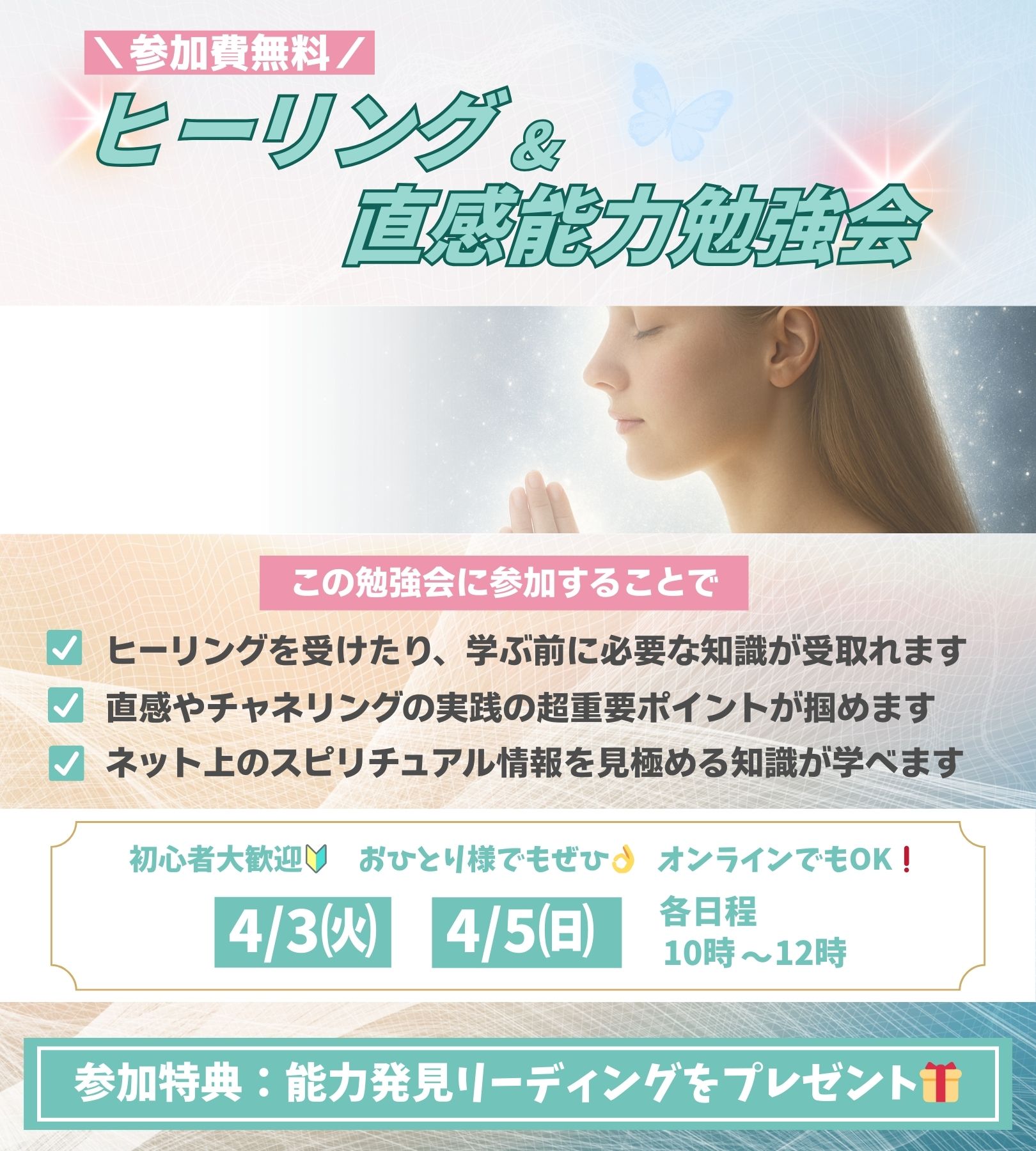 【4月】参加費無料!ヒーリング&直感能力勉強会を開催します☆